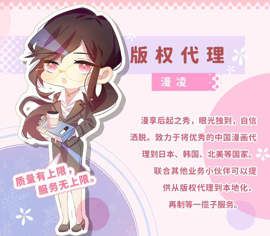 拷贝漫画于2017年成立于北京,现已在香港、成都、沈阳三地设有子公司,业务涉及漫画本地化、漫画版权代理、漫画再制、原创漫画创作等多个领域。 我们的理念:择一事终一生,拷贝漫画希望做漫画行业的匠人,希望为每个用户提供极致的服务和作品。